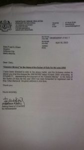We did not pay to the Philippines government. That letter from our PH embassy is addressed to “Fuad Abdullah Kiram I” – the younger brother of Sultan Mohammed Mahakuttah Abdullah Kiram, the last Sultan of Sulu officially recognised by the Philippine government. And given how we’ve sent an official document, Malaysia also recognizes this person.