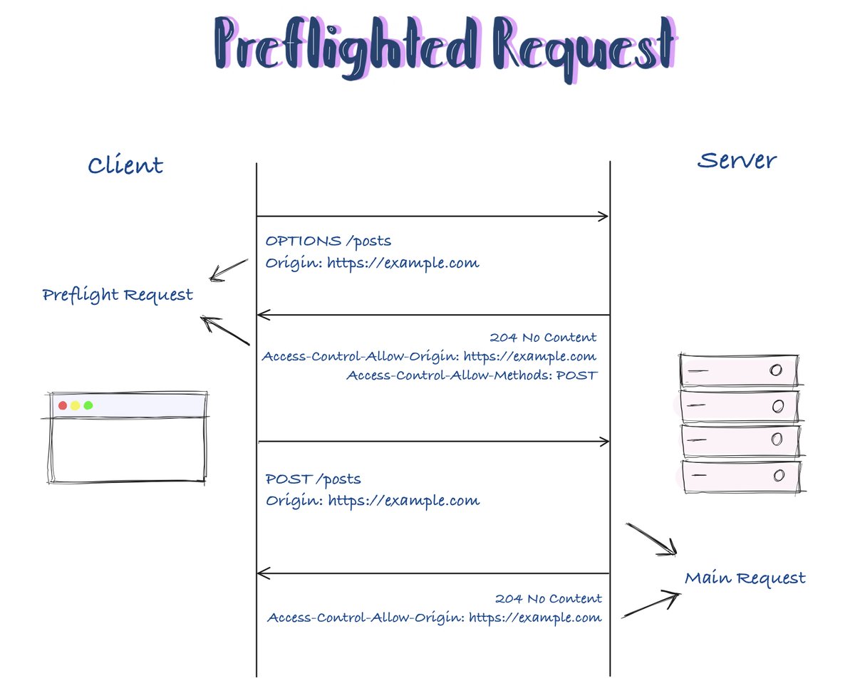A few HTTP request methods cause side effects on the server, and these types of request methods must be pre-flighted.